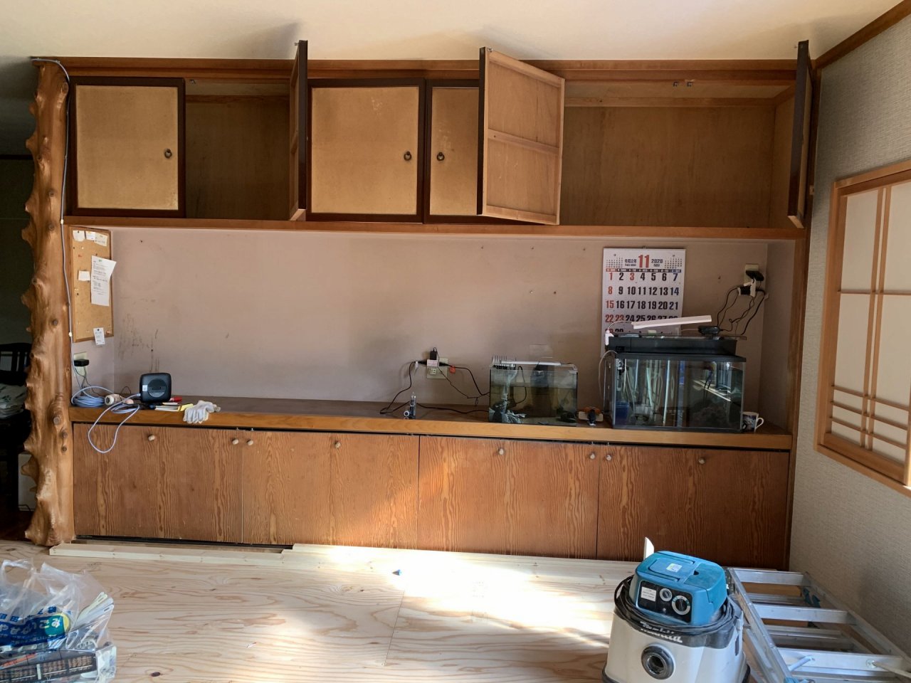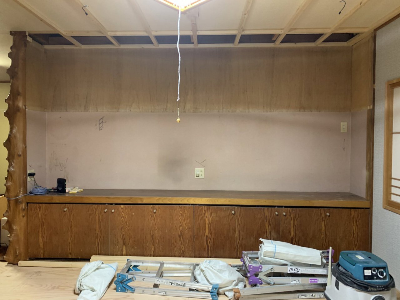 まずはあまり使っていなかった吊り戸を外し 圧迫感をなくそうと思います