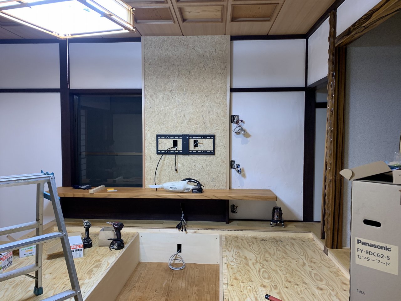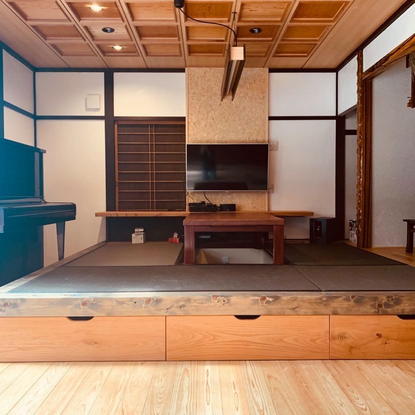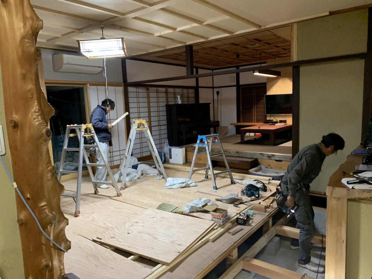 畳を敷く小上がりに板が貼られて だんだんイメージがつかめてきました