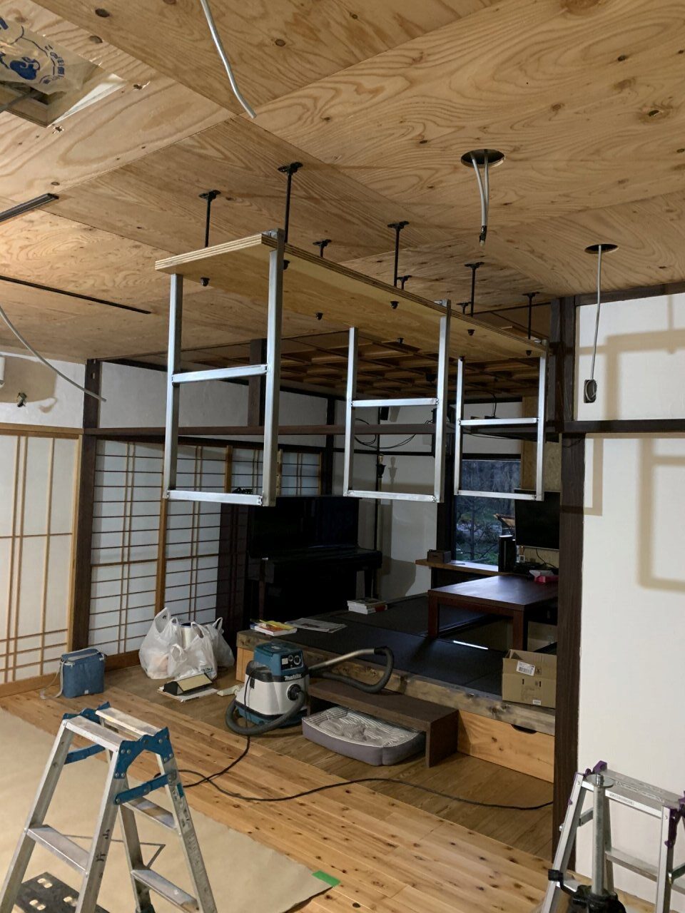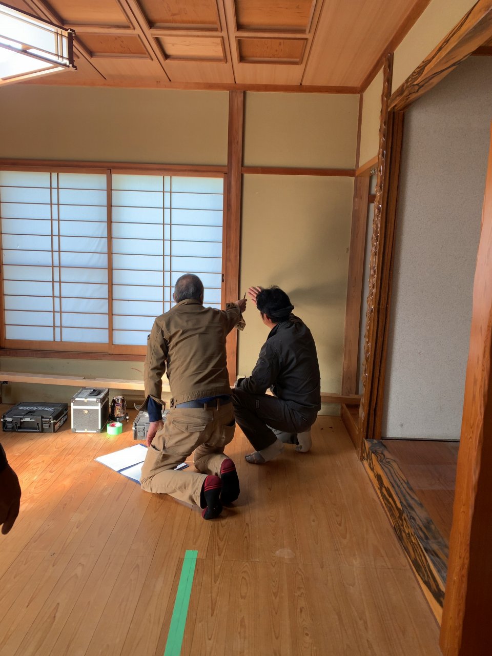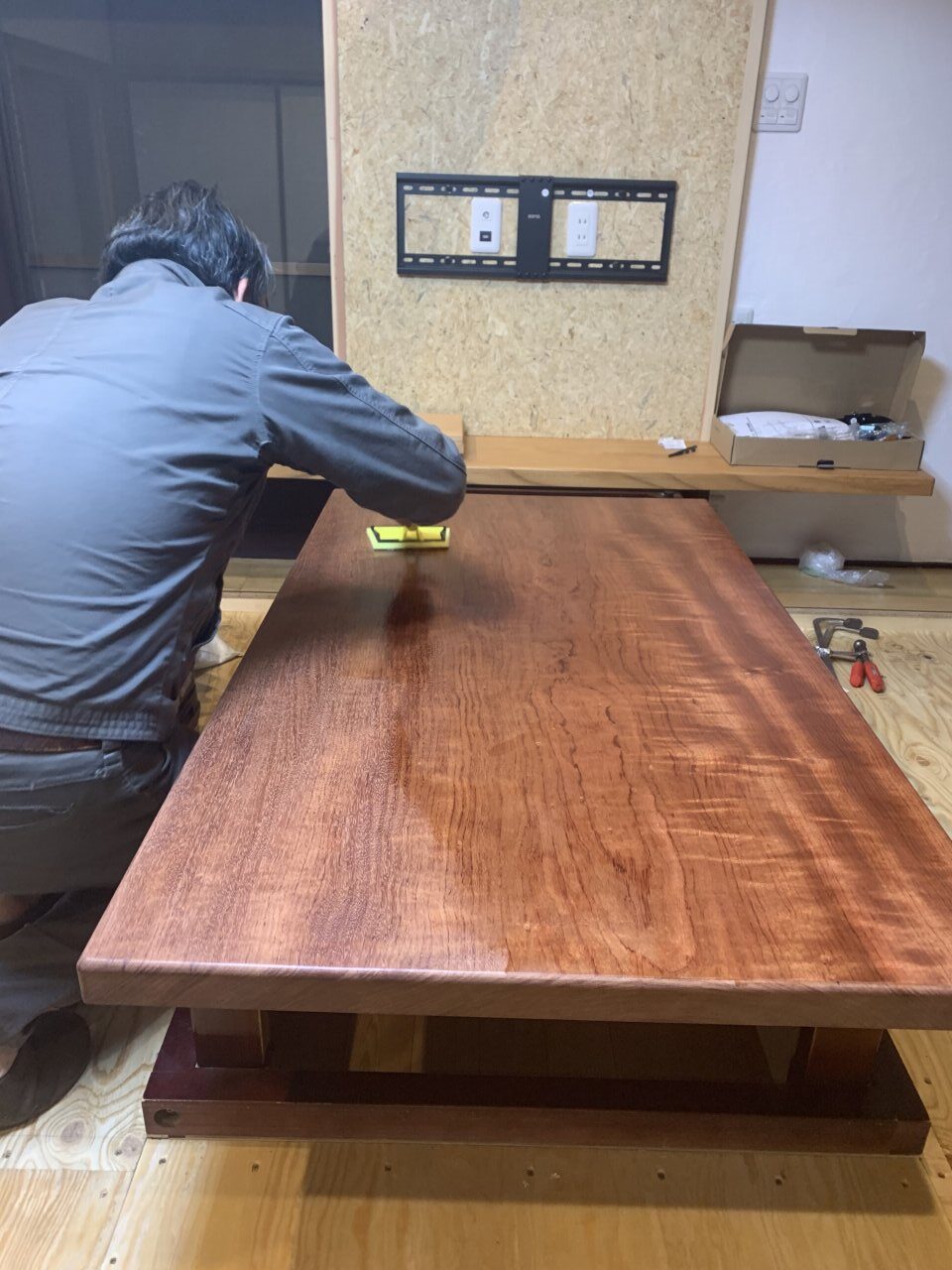 畳を敷く小上がりに板が貼られて だんだんイメージがつかめてきました