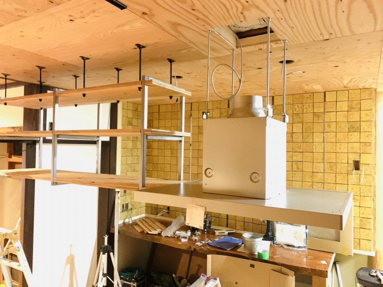 レンジフードもなるべくあらわしにしてワイルドに!