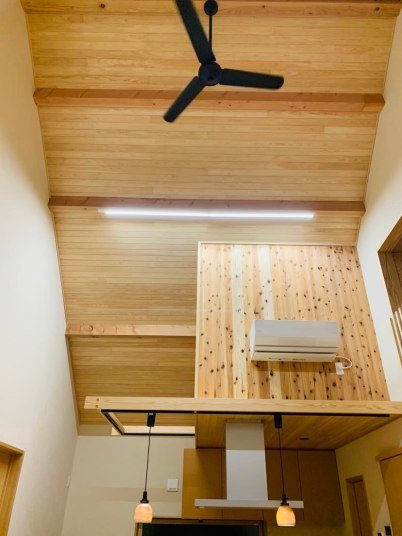 天井もふんだんに木を使い温かい雰囲気に