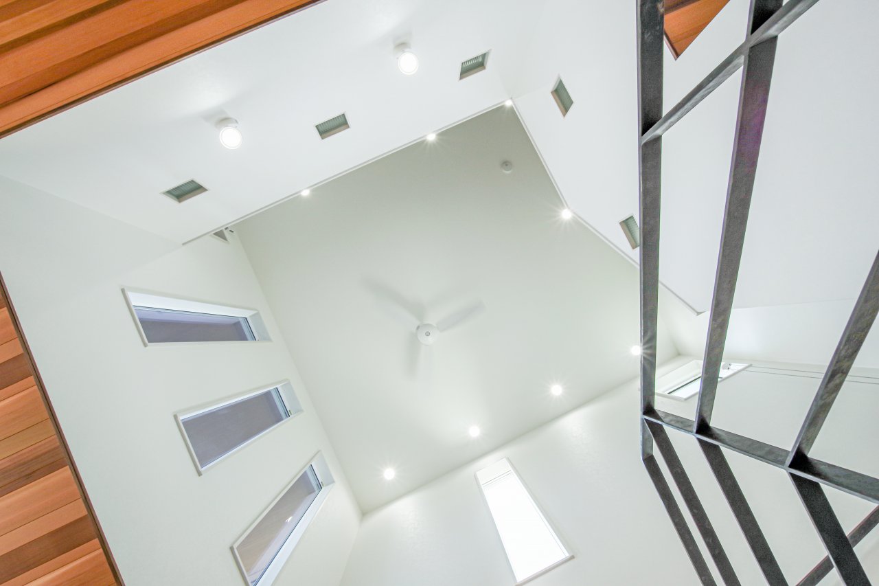 2階への吹き抜けは解放感を感じさせてくれます