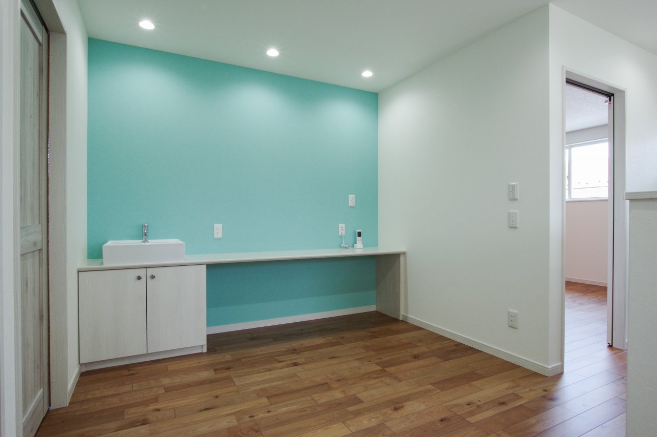子供部屋には造り付けの机とクローゼット