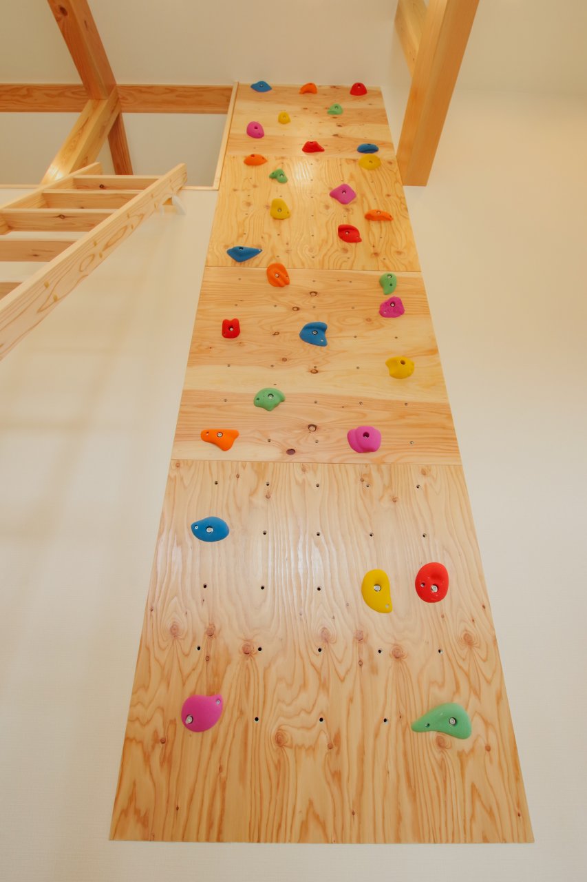 運動が得意なお子様にはボルダリングを設置。難易度で付け替えが可能です
