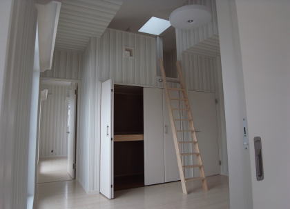 特注のアイアン金具を付けた梯子で屋根裏へ